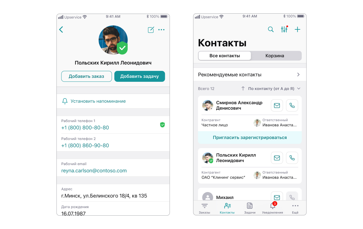 Сотрудники, которые часто в разъездах, при работе с клиентами могут вносить данные через мобильное приложение црм Upservice. Ссылка для скачивания iOS и ссылка для Android.