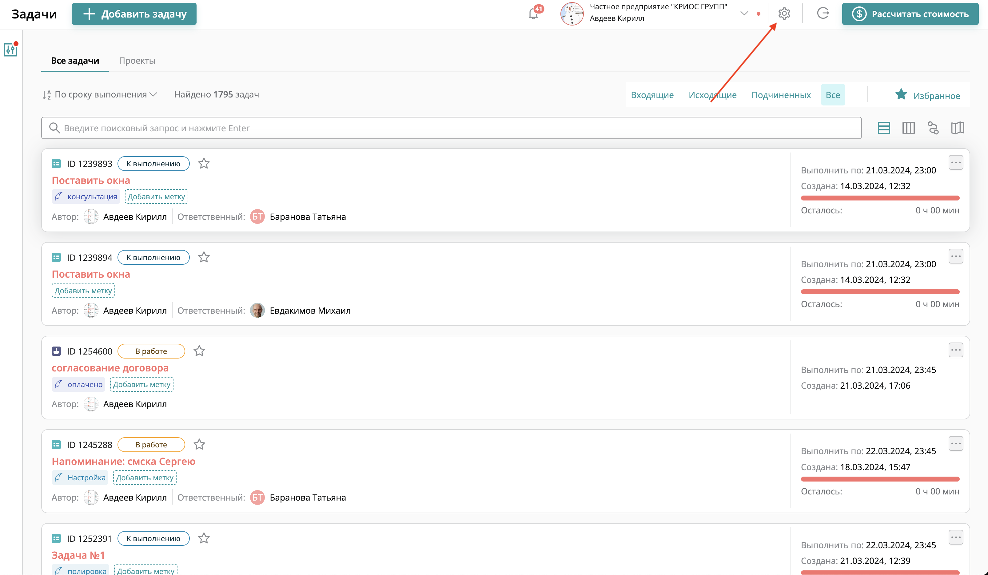 Чтобы изменить пароль от вашего личного кабинета, нужно перейти в «Настройки аккаунта». Для этого кликните по шестеренке в правом верхнем углу: