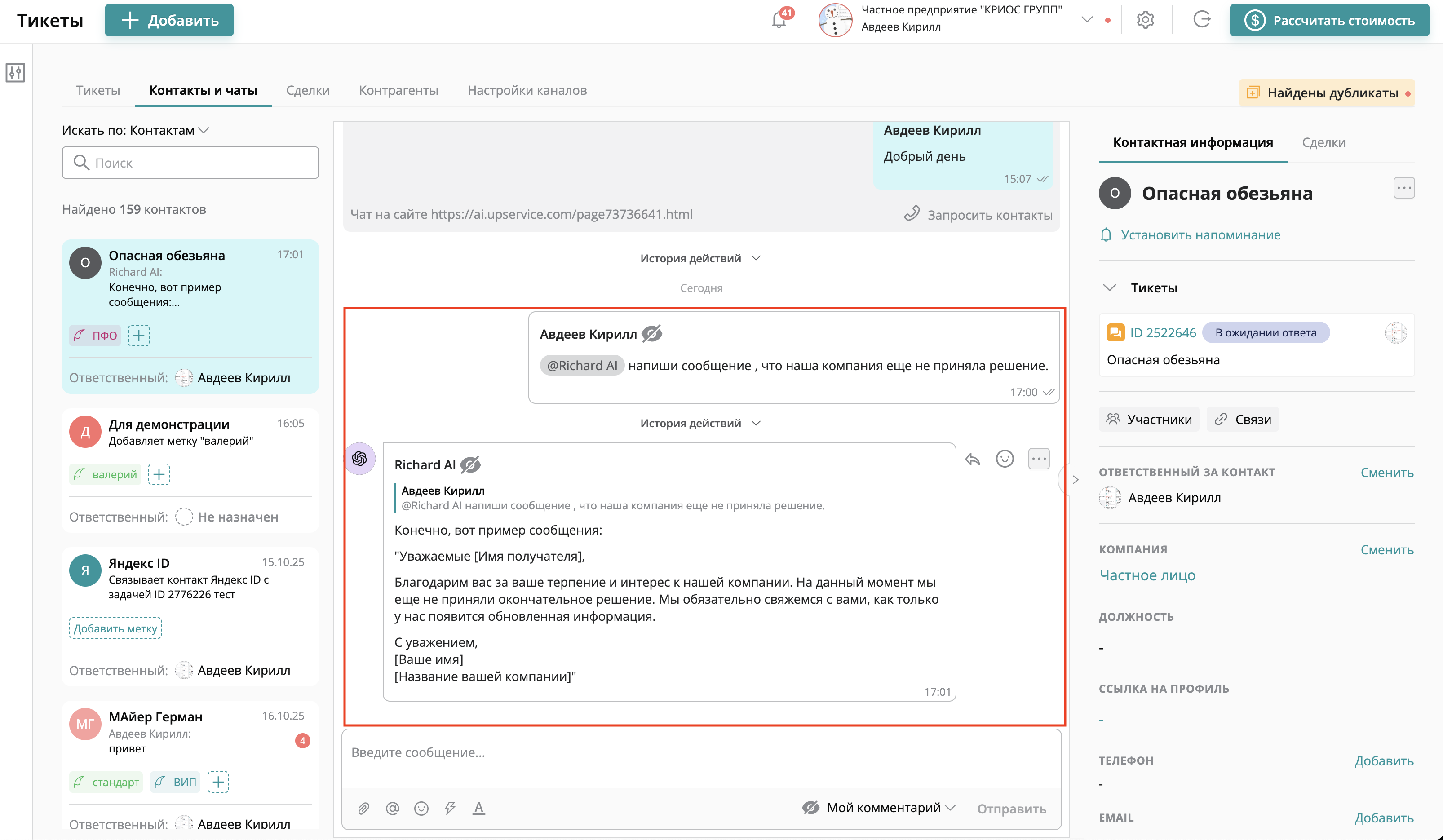 Как использовать AI-ассистента Ричарда для ускорения вашей работы в Upservice