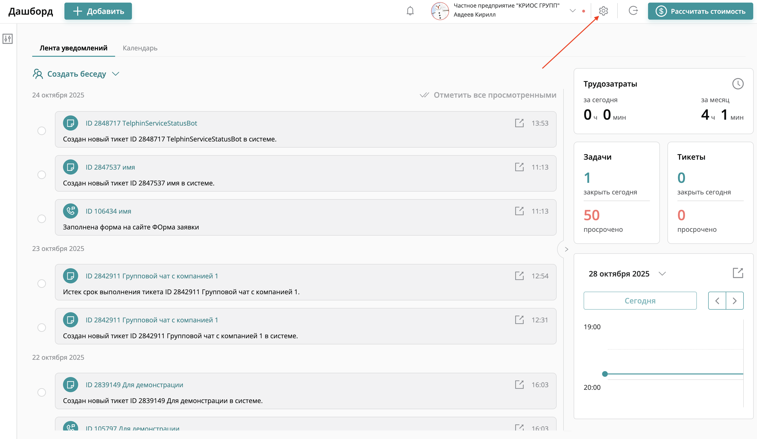 Чтобы изменить рабочую почту, перейдите в «Настройки аккаунта» или кликните по шестеренке в правом верхнем углу:
